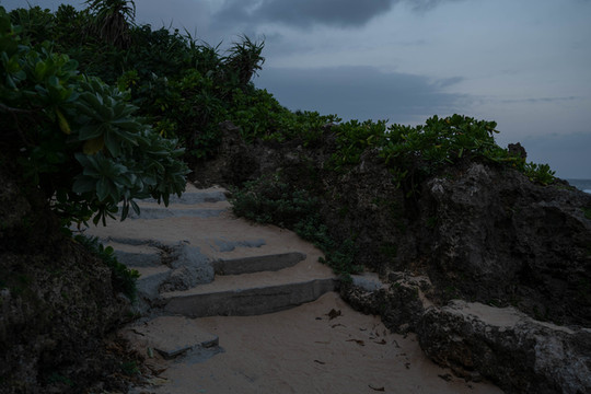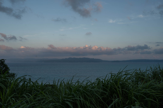 不,这只是错觉,一大片乌云正从东边的方向袭来,我的直觉告诉我,一场大雨马上就要来临。距离古宇利岛大概还有三分之一的路程,我必须得加快脚步了。