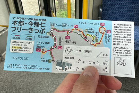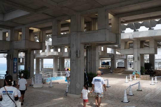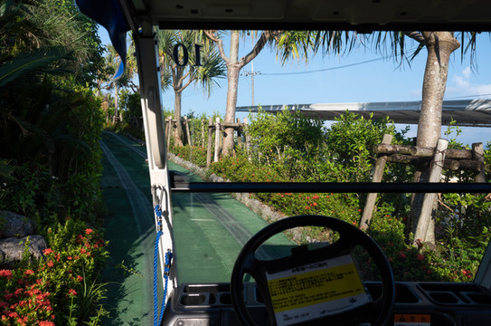 由于要赶返回古宇利岛的大巴,所以我的冲绳美丽海水族馆之旅也只能暂时先告一段落。幸好其中一个大巴车站就设在翡翠海滩后面的Orion本部度假水疗酒店的门口,这样就不用再赶去前面下车的地方坐车了。