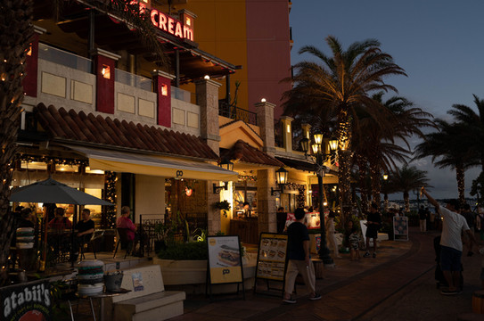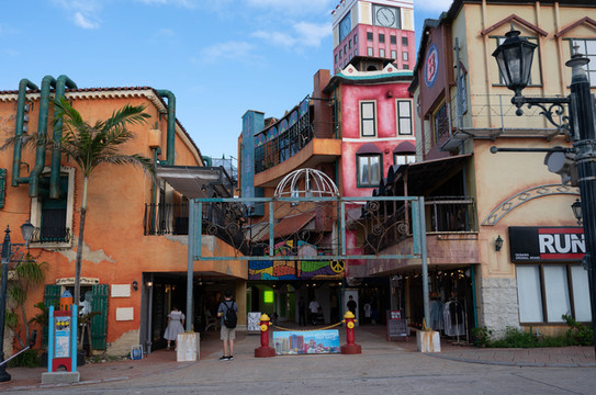 走进美国村内,这里纯正的美式街景已经完全没有了一点霓虹的影子。