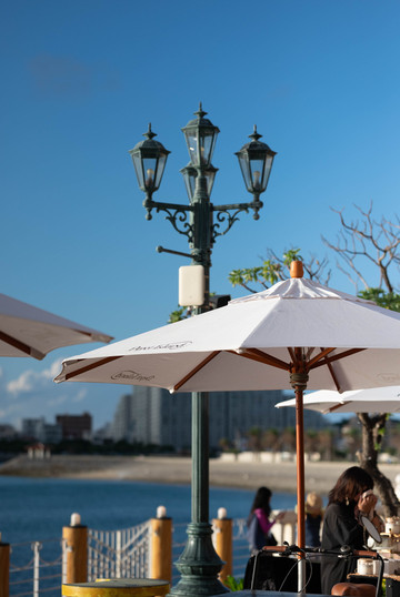 在这个晴好的上午,就应该坐在这里吹着海风,吃着甜点,好不惬意~
