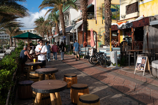酒吧街旁边的海滨栈道上,则是一条小镇市集,人来人往非常热闹。