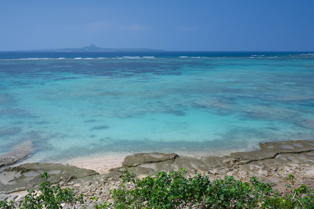 大约走了三分之一路程的时候,从这里看过去的古宇利岛全貌是最清楚的。