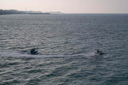 在古宇利岛,除了常规的海滩项目之外,还可以乘坐充气艇感受一下被奔驰在海面上的速度与激情。