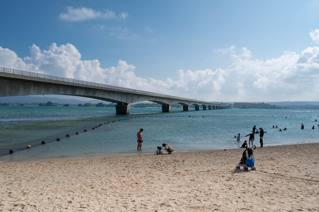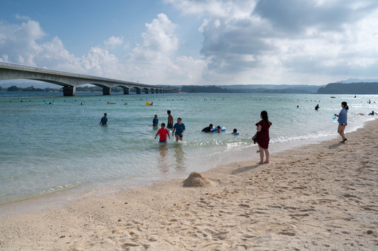 在古宇利大桥的两端各有一片海滩,位于古宇利岛上的古宇利海滩前一天已经去过了,今天要去的则是大桥南端的海滩。