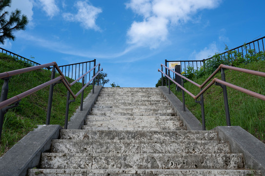 下车之后,我决定先沿着栈道的楼梯往下走,因为栈道的前方,就是湛蓝的天空和无际的大海。