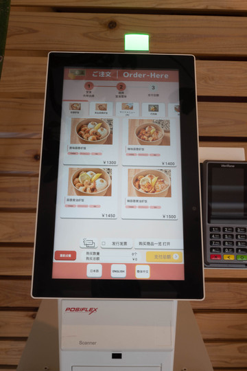 如果想要堂食,那么在餐厅一楼的自助点餐机上完成即可,该设备支持中日英三种语言非常方便。