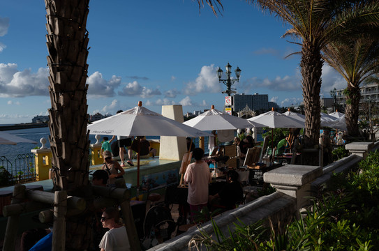 美国村里面各式各样的小商店还是很有特色的,只不过好多都集中在建筑底下,密度也比较高,显得有一些压抑。我最喜欢的,还是这条海滨的酒吧街。