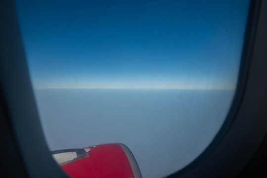 一个多小时后,飞机已来到云层的上方。虽然搭乘飞机的次数也不少了,但我依然乐忠于欣赏窗外高空中的美景,因为这个时候的天空,蓝得又美又深邃。