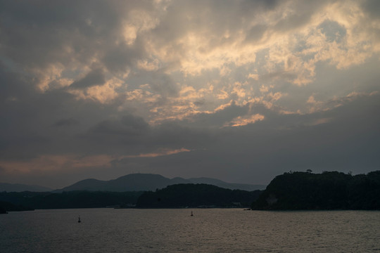 再次回到大桥上,西边乌云背后的夕阳还在做着最后的挣扎。