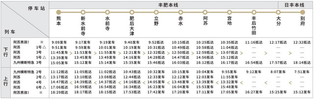 除此之外,除了特快列车“九州横断特急”之外,这次还新开设了“特快阿苏”。详细的列车时刻表和运行日请参照下面的JR九州官网。