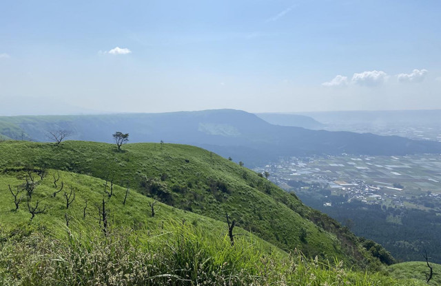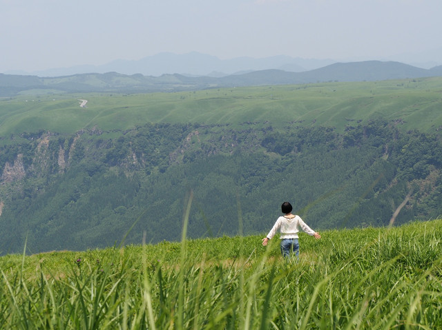 在天然的瞭望台可以360度观景,这里也是阿苏的绝佳观光景点。