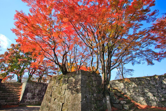 由于城池的形状像牛睡觉的样子,所以别名“卧牛城”,可将九重山、阿苏山和城下町尽收眼底。