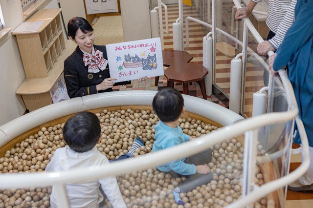 家族车厢 (3号车)有许多诸如“木球游乐池”、 “图书室”等趣味性设计。
