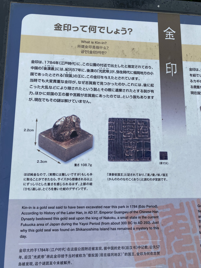 最后来到福冈随处可见与之相关的事物的金印发掘地,金印公园。公园不大,但是由于其历史意义,使其具有一定的游览性。再次回看到中日两国的各种联系。同时也是远眺的好地点。