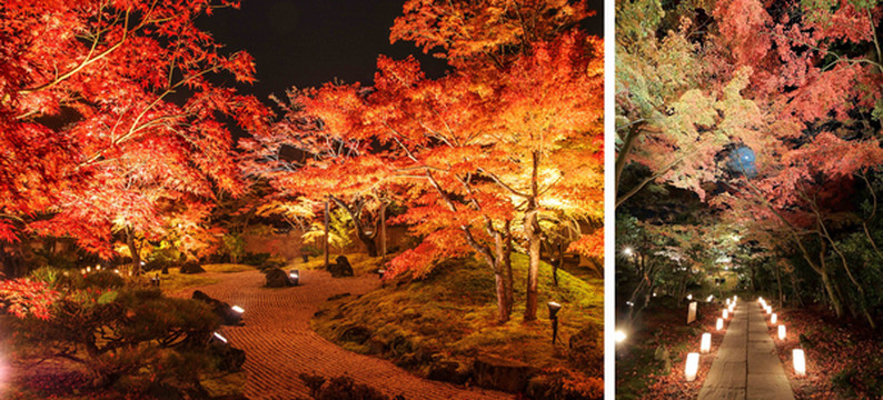 到了晚上,从圆通院出发,一直到松岛的各处观光名所都会举行点灯活动,游客可以欣赏梦幻般的夜枫美景。在点灯活动期间限时开放的“绝景”「心字池」,红叶与水中的倒影交相辉映,是最佳的赏枫景点。此外,圆通院内还会举办赏夜枫音乐会,太鼓和小提琴等乐器合奏,和风与西洋风完美融合在一起,营造出热闹非凡的奇幻体验。