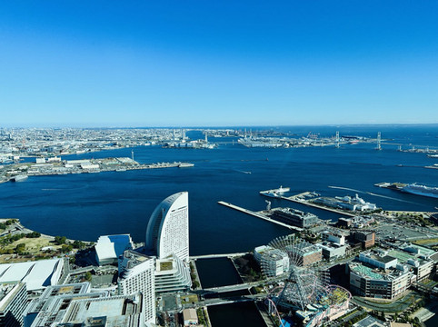 在酒店稍作休整后就开始了今天的旅程了。因为横滨皇家酒店就地处横滨地标塔,69层就是非常有名的展望台sky garden,在标高273米的观景台可以将整个横滨市尽收眼底,当天的天气非常的晴朗,海洋在阳光下灼灼生辉,海和海岸线仿佛镶了金边,横滨巨大的摩天轮为这个海滨城市增加了几分童趣,到港的轮渡静静的靠在岸边,喜欢大海的朋友一定要来打卡空中花园展望台呀!低阶层还有商场和餐厅,逛累了可以去咖啡厅喝上一杯咖啡小憩一会。