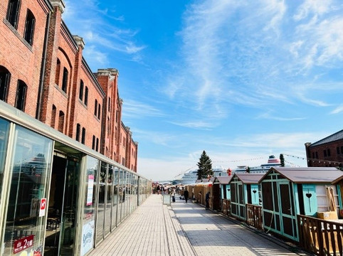 第二天的第一站就是大名鼎鼎的红砖仓库啦!红色的砖瓦搭配上满满的圣诞装饰,配合着海岸线和红砖仓库旁边大大的圣诞树,真的是圣诞节最好的打卡地了。红砖仓库有1号馆和2号馆,原本是国家的保税仓库,现在1号馆里面是有关音乐和舞蹈等的充满横滨魅力文化的艺术空间,2号馆里面有很多小店和餐厅,非常的文艺小清新。到了夜晚,这里的圣诞彩灯会全部点亮,巨型圣诞树会格外的耀眼,还有一条圣诞小吃街,非常的浪漫。