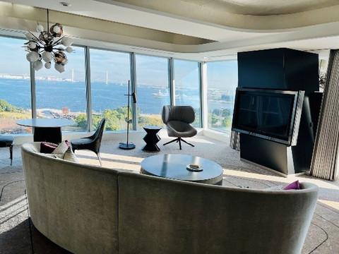 为了模拟大家从国内乘坐国际线飞往日本的路线,我这次的出发地选择了位于东京的羽田机场T3国际航站楼,从羽田机场到横滨很近,开车的话大概30分钟的车程。我提前在日本携程网订好了专车,司机师傅早早的就在机场举牌迎接我啦!我也体验了一把明星接机的快乐。司机师傅一路给我介绍了很多横滨值得打卡的景点,相聊甚欢,感觉时间嗖的一下就过去了,等回过神来已经到了第一天要下榻的酒店。第一晚入住的是横滨皇家花园酒店,酒店的对面就可以看到海和轮船,刚一下车就已经度假氛围拉满了。酒店的大堂有一颗巨大的圣诞树,非常的漂亮,各种圣诞装饰美不胜收,酒店的装潢偏欧式宫廷风,艺术气息非常的浓厚。这次入住的是位于61层的富士山观景房,一进房间被一整面玻璃外的壮丽景观惊呆了,有一种在高塔上看风景的感觉,富士山尽收眼底,房间非常的宽敞,还有胶囊咖啡机和mini bar,可以说是性价比满分的酒店了。