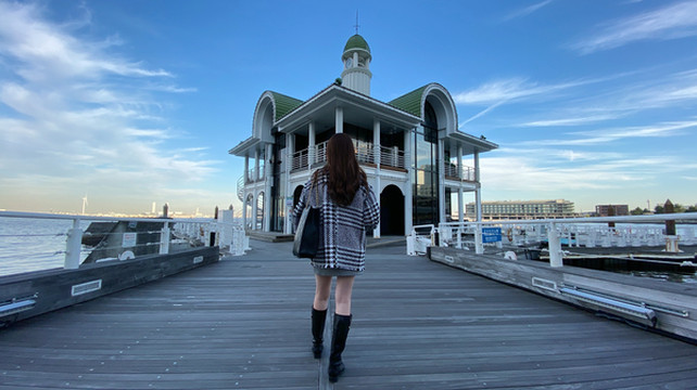 离开了展望台我就开始往我的第二个景点出发了,第二站要去的地方叫做横滨港大栈桥国际客船航站楼,自1859年横滨港开港,来自世界各国的船只开始驶入横滨,有横滨港玄关口之称的横滨港大栈桥国际客船货运码头,多年来不仅仅作为最著名的码头兢兢业业的为国际贸易事业和旅行业保驾护航,还作为著名的旅游景点被大家所喜爱,来横滨的游客必会来这里打卡留念。码头的屋顶是木质结构的曲面设计,喜欢建筑的朋友应该会很喜欢这个地方。码头旁边停靠的就是日本最大的邮轮飞鸟2号,目前因为疫情的原因邮轮只有日本国内行,疫情结束后,邮轮会有更多开往海外的路线。因为码头的景色太美,我晚上又来看了一次夜景,草坪上亮起了蓝色的灯光秀,像一片蓝色的灯海,正好有一对新人在拍婚纱照,时间仿佛就定格在了那一秒。