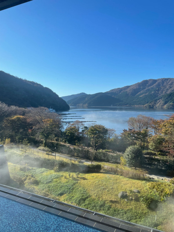 第二天早晨,天气格外晴朗,吃早餐的时候发现晴朗湛蓝天空下的芦之湖甚为美丽,所以打算再次乘坐海贼船,不下船,只在船顶欣赏湖景,虽然酒店也有免费巴士送到小田原,但是感觉周游券更适合旅游人士,交通多样性,让你用不同的视角领略箱根.