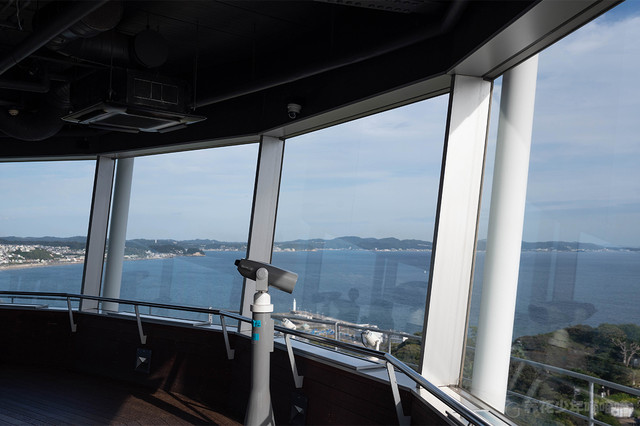 从一楼乘坐电梯便可登上灯塔的展望室,在这里可以看到完整而清晰的湘南海岸,还能看到片濑海岸通往江之岛的跨海大桥。