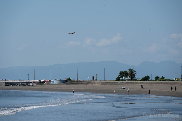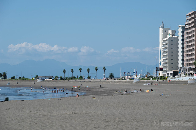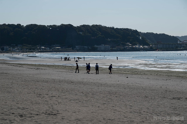 七里之滨,位于镰仓的西南部,是一片面向相模湾约2.9公里的海滩,被评为日本海滩百选之一。