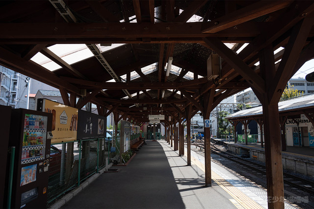 虽然车站的站台比较简陋,也没有电梯,但这样的小站非常有日本的特色。