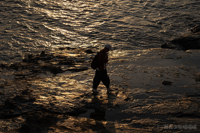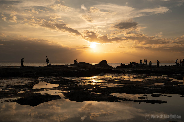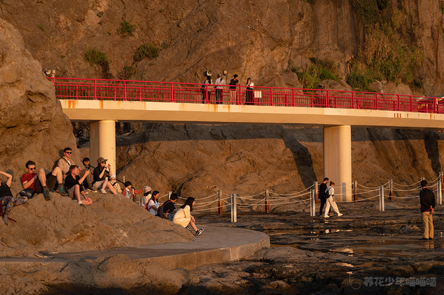金黄色的夕阳下,这片岩石海滩真的美得让人窒息,尽管我想着要去旁边看看,但我的双腿就是停留在原地迈不开步伐。
