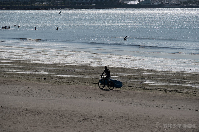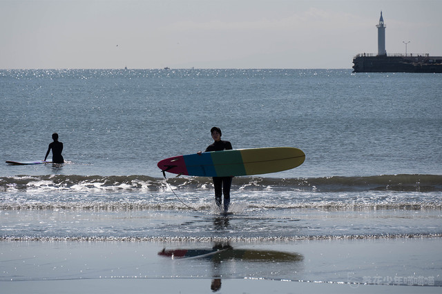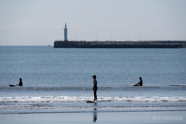 七里滨,同样也是著名的冲浪圣地,一大早就有附近的居民来这里冲浪。