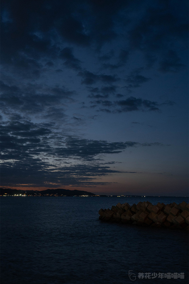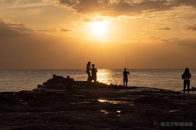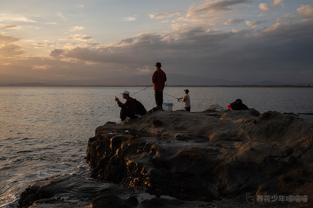 七里之滨,也是当地钓鱼爱好者的天堂。天还没亮,就有一位“仙道“正在海滩悠闲自得地独自垂钓,期待着鱼儿上钩的一刻。