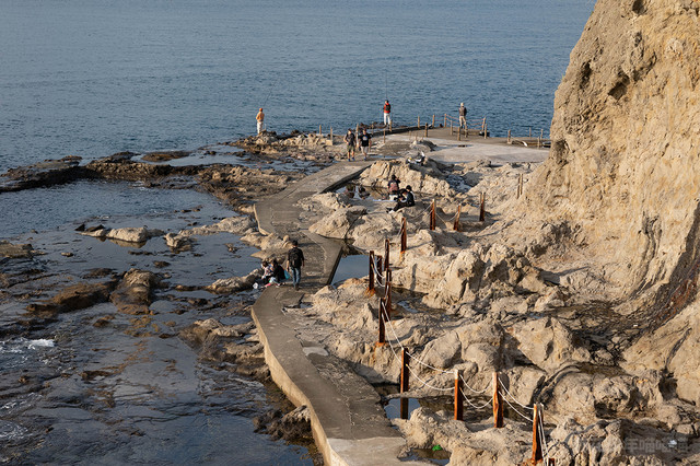 广场北边是一条平坦的海滨长廊,许多当地的市民会在这里海钓,据说可以钓到凤尾鱼、比目鱼、鲷鱼等各种鱼类。