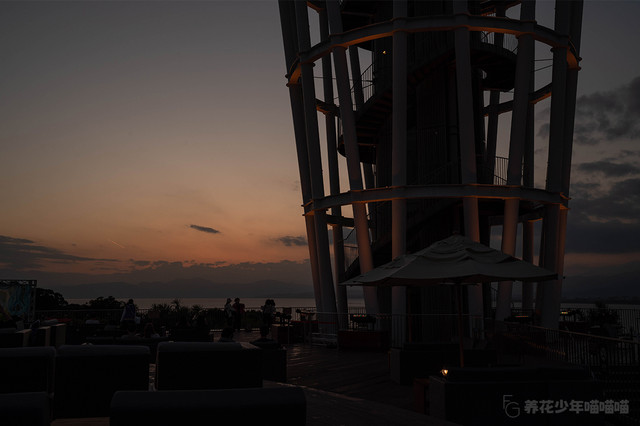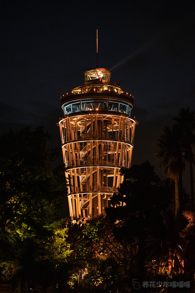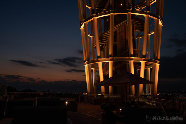 展望灯塔的灯光逐渐点亮,营造出了梦幻般的灯光效果。