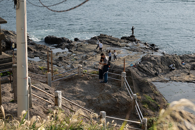 走下一条蜿蜿蜒蜒的台阶路,便会到达江之岛最深处的海岸:稚儿之渊。