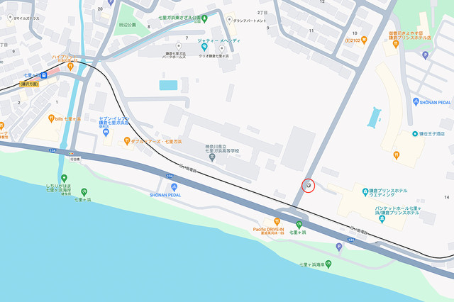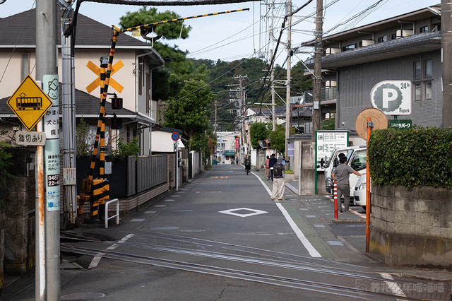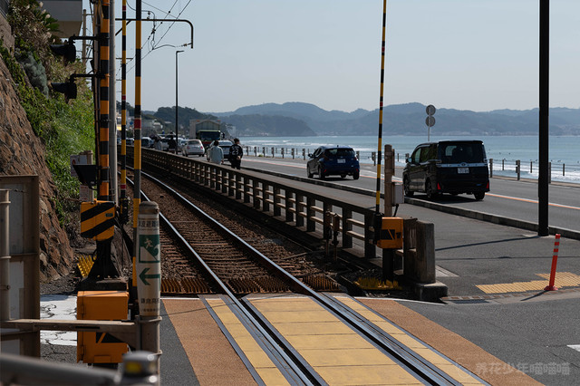 在镰仓,除了顕証寺旁边那个稍窄一点的路口之外,最接近镰仓高校旁边那个热门打卡地的场景就是这个镰仓王子酒店旁边的平交道口,当江之电缓缓驶来的时候,在这里也可以拍到相似的画面。