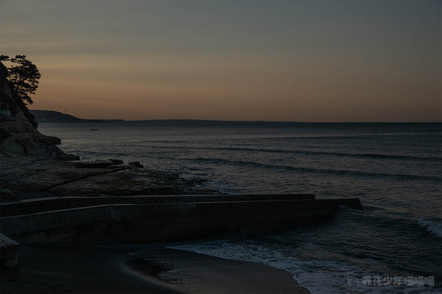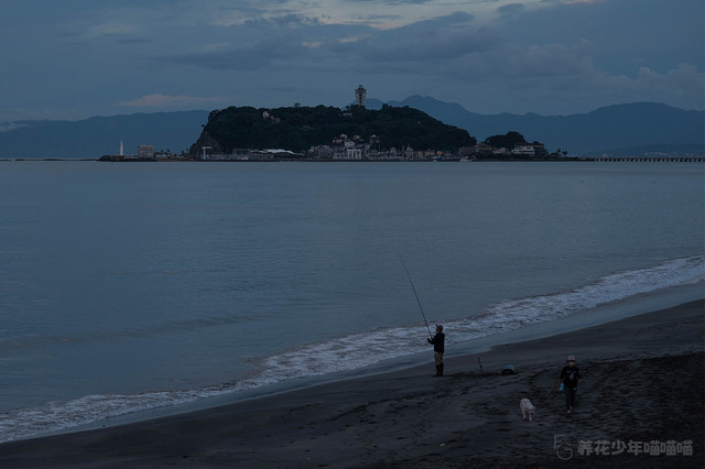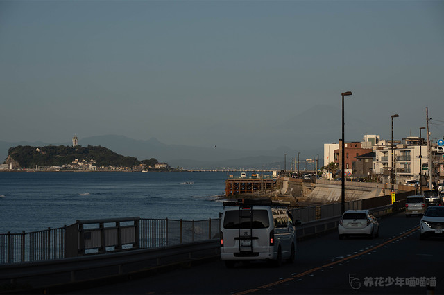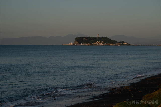 这是一个晴朗的早晨,在七里之滨的岸边可以清晰地远眺被浸在暮光中的江之岛,景色十分迷人。