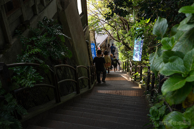 第二种便是沿着老街穿过江之岛后抵达海岸,虽然有一小段路可搭乘电梯,但仍然有许多阶梯要走,特别是回程的时候还要再次爬上那段在下山时候走过的连续陡峭的死亡阶梯,这条路线说实话并不是特别友好。