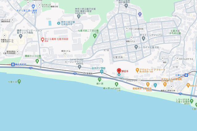 乘坐江之电在七里之滨下车,向东步行约10分钟就可以到达这里。