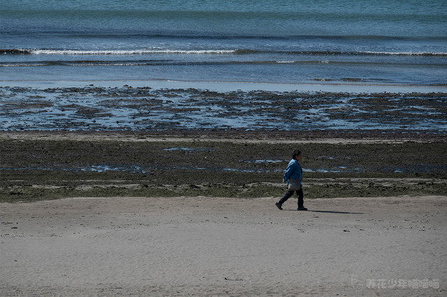 迎着海风拂过,踩着片片浪花,波光粼粼的海岸上,正走过一个孤独的身影。