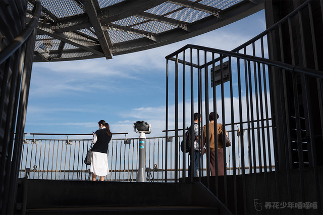 江之岛灯塔的顶层分室内、室外两区,从室内展望室拾级而上,便可来到海拔约为120米的室外观景台。