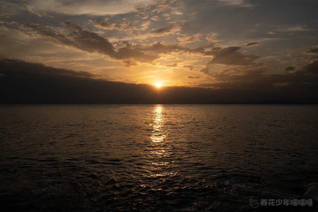 太阳渐渐西沉,整个海面也开始变得金灿灿的。
