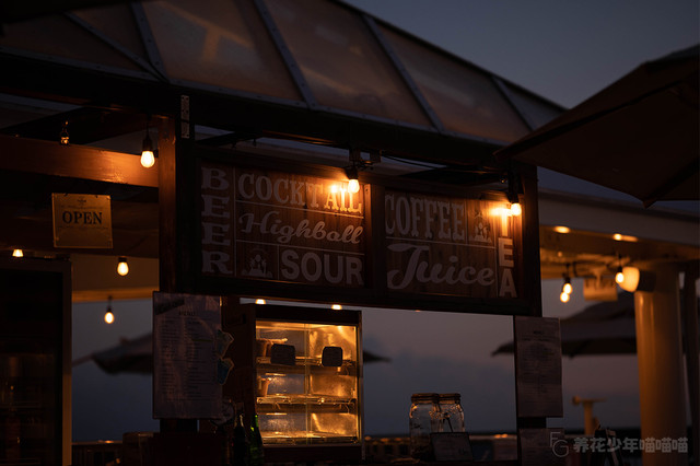 露台上有一家小小的咖啡馆,提供果汁、咖啡、啤酒等各种饮品。