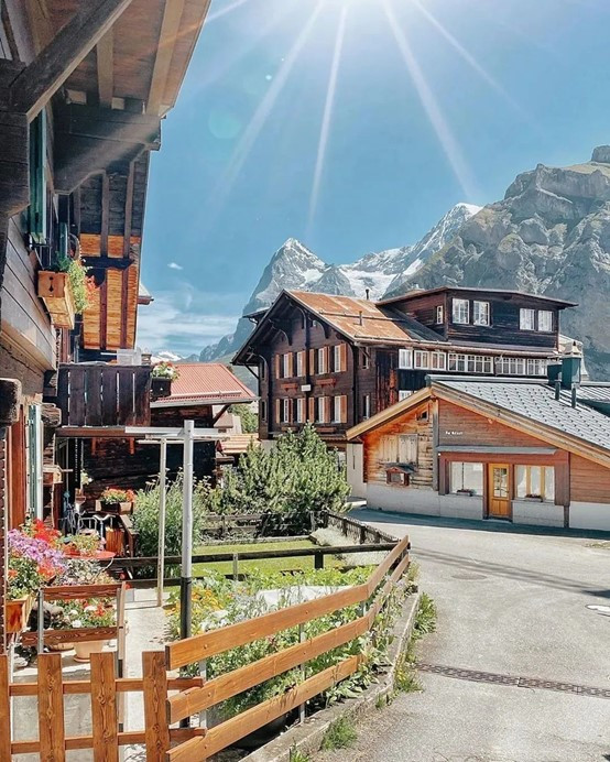 散落在阿尔卑斯山间的米伦小镇,如一颗脱尘的明珠,美丽而宁静,镶嵌在伯尔尼高原的雪山之中。茂密的森林、幽深的峡谷、开满鲜花的小木屋、宁静的小路、巍峨的雪山, 就如童话世界一般的梦幻。