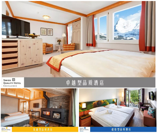 店瑞士品质酒店的成员涵盖瑞士45个目的地的众多精选3、4星级酒店,为宾客提供最优价格保证和高品质服务是我们的追求与承诺! 曾多次荣获猫途鹰“旅行者之选”、瑞士最热情友好的100家酒店等奖项,瑞士品质酒店分为三大类别:卓越型品质酒店、优越型品质酒店、超值型品质酒店,以不同的分类满足宾客对环境、设施、服务、价格等各方面的不同需求。 无论您是游山玩水的旅行者还是公务繁忙的商务人士,不管您身处瑞士风景秀丽的度假区或车水马龙的繁华都市,都有舒适温馨、服务周到的品质酒店为您提供卓越服务。