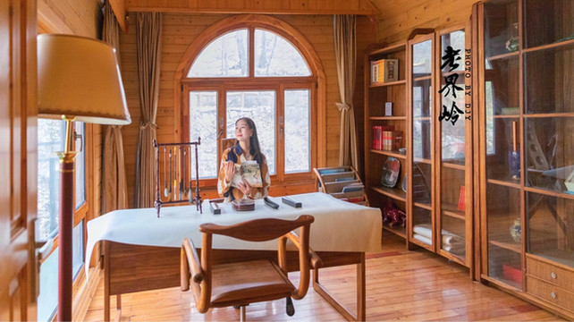 二楼有两间客房,一间书房,自己很少入住带有书房的酒店,这里的书房不仅有笔墨纸砚,还有很多书籍,一定不会在山里感到无聊。