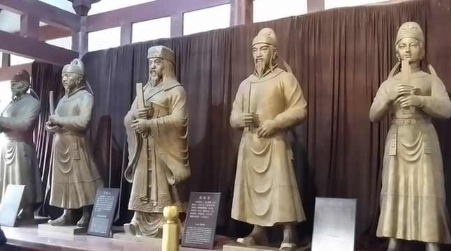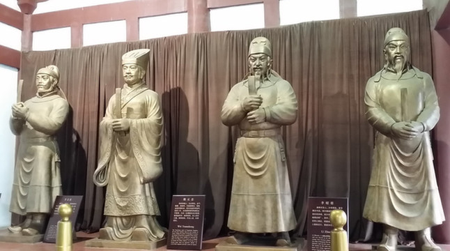 殿内左右两侧塑有高宗、武周朝时期的九位著名大臣像,分别是左边的李绩(徐懋功、三朝出将入相)、李昭德(宰相)、魏元忠(两次宰相)、李义府(宰相)(4人图)