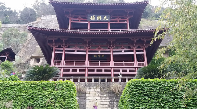 大佛窟是我国初唐时期佛教造像艺术的代表作。这个窟的佛像和其它地方的佛像不一样,他们都是带有耳环的。所以很多人说这里的佛像是武则天的替身像,武则天去世后升为佛祖了。