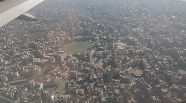 在飞机降落前,我也有机会见到了加德满都这座喧嚣城市的全貌,阳光照射下的雾气中夹杂着漫天的灰尘,让这个神秘的宗教国度又多了一抹烟火气。当地时间中午11点,飞机抵达了加德满都的特里胡凡机场。
