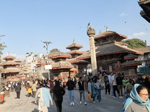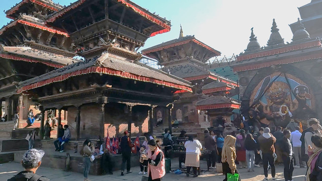 尼泊尔也经历过天灾,2015年尼泊尔发生8.1级地震,很过古迹毁于一旦,来到当时损毁严重的杜巴广场,不少建筑都用木棍在外围支挡加固。这里囊括了尼泊尔16世纪至19世纪之间的古典建筑,广场上有50多座寺庙和宫殿,维持着原有的建筑形式与风采。当地的不发达反而造就了这片少被现代化进程践踏的净土,杜巴广场也成为了尼泊尔文化遗产的集大成之地。