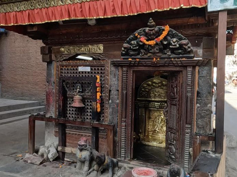 再比如,巷子里两侧时不时就会出现一个像报刊亭一样大小的寺庙,尽管空间不大但装饰和雕刻都十分精美。走在街上一种很慵懒的感觉,街上很少有行色匆匆的人,更多的是在晒太阳、在松弛的守着店铺的人。就连当地的狗子都肆意的趴在路中间睡觉,只有路上络绎不绝的摩托车会撕裂这份宁静,随着车流的方向,我们汇聚到杜巴广场上。