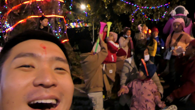 今晚是跨年夜,随着天色渐暗,我们才发觉到,街面上的人越来越多,最后变成了一场可遇而不可求的游行狂欢。